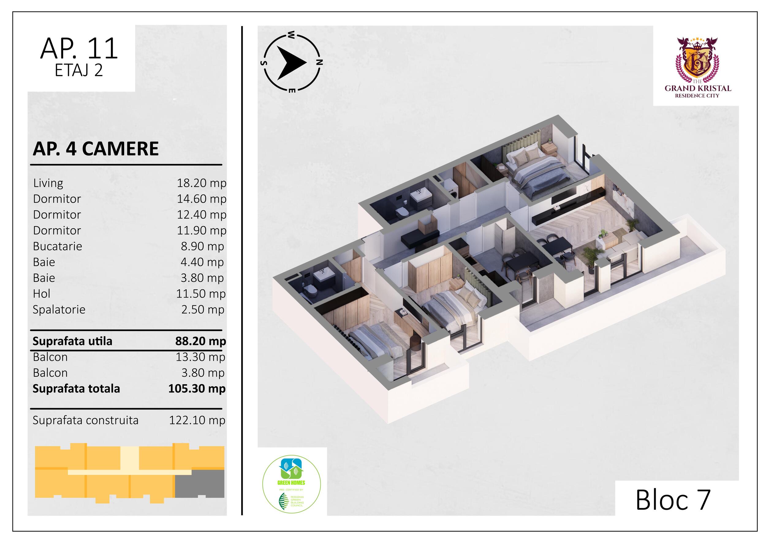 Suprafata utila totala: 105.3 mp