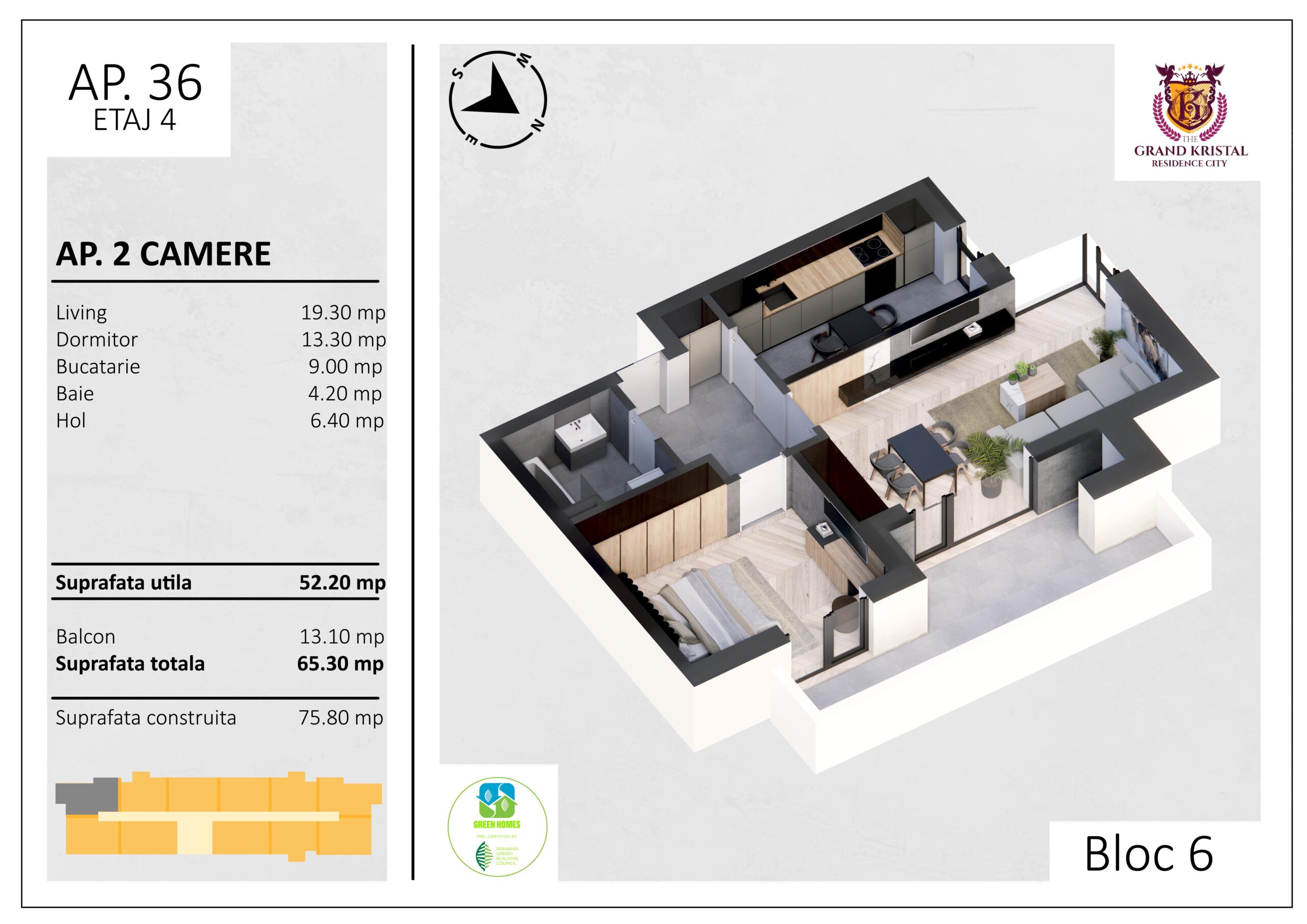 Suprafata utila totala: 65.3 mp