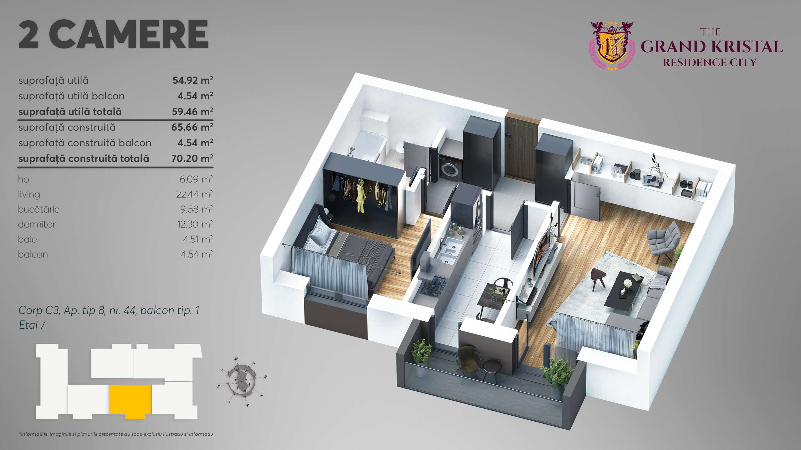Suprafata utila totala: 59.46 mp