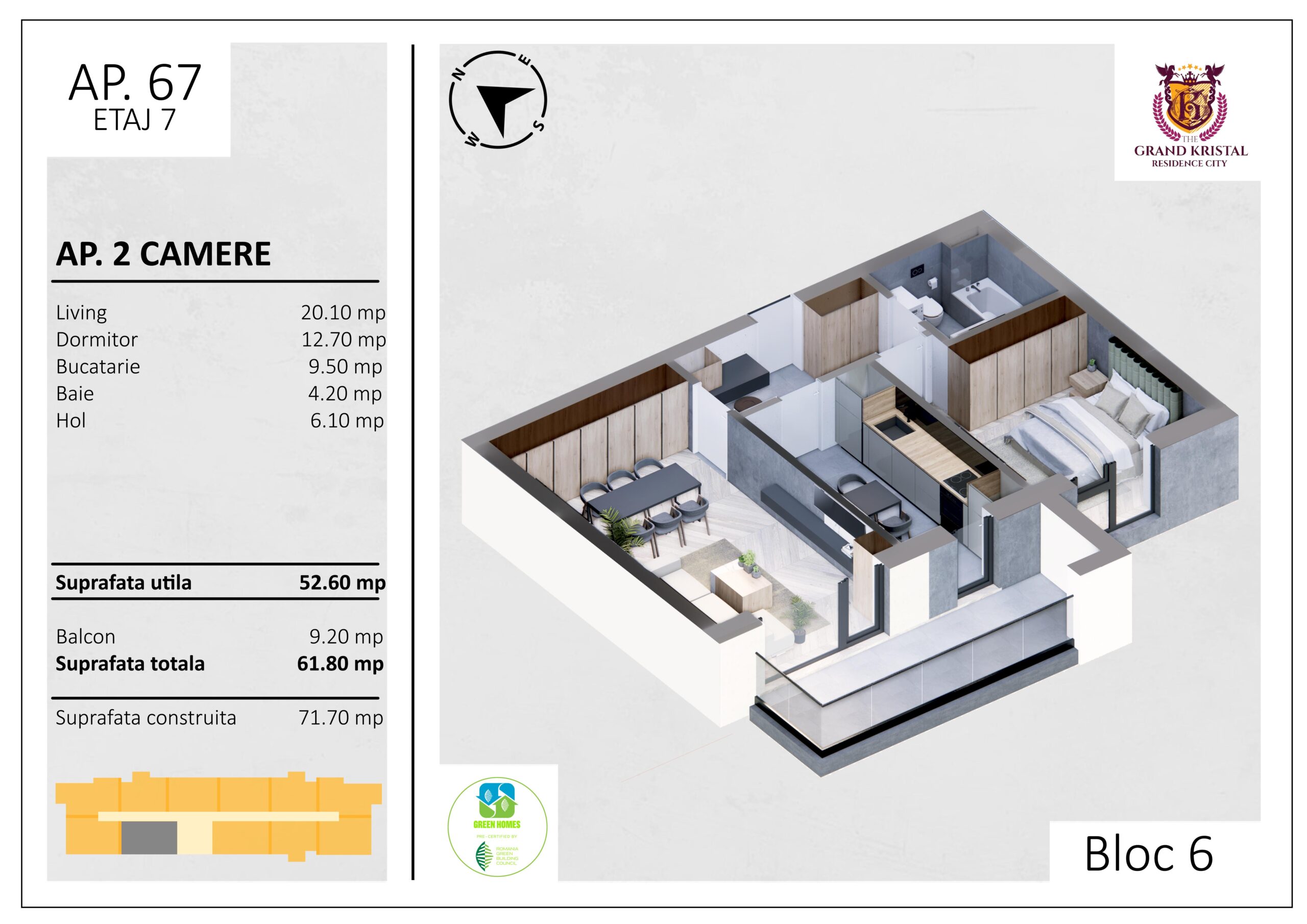 Suprafata utila: 52.6 mp