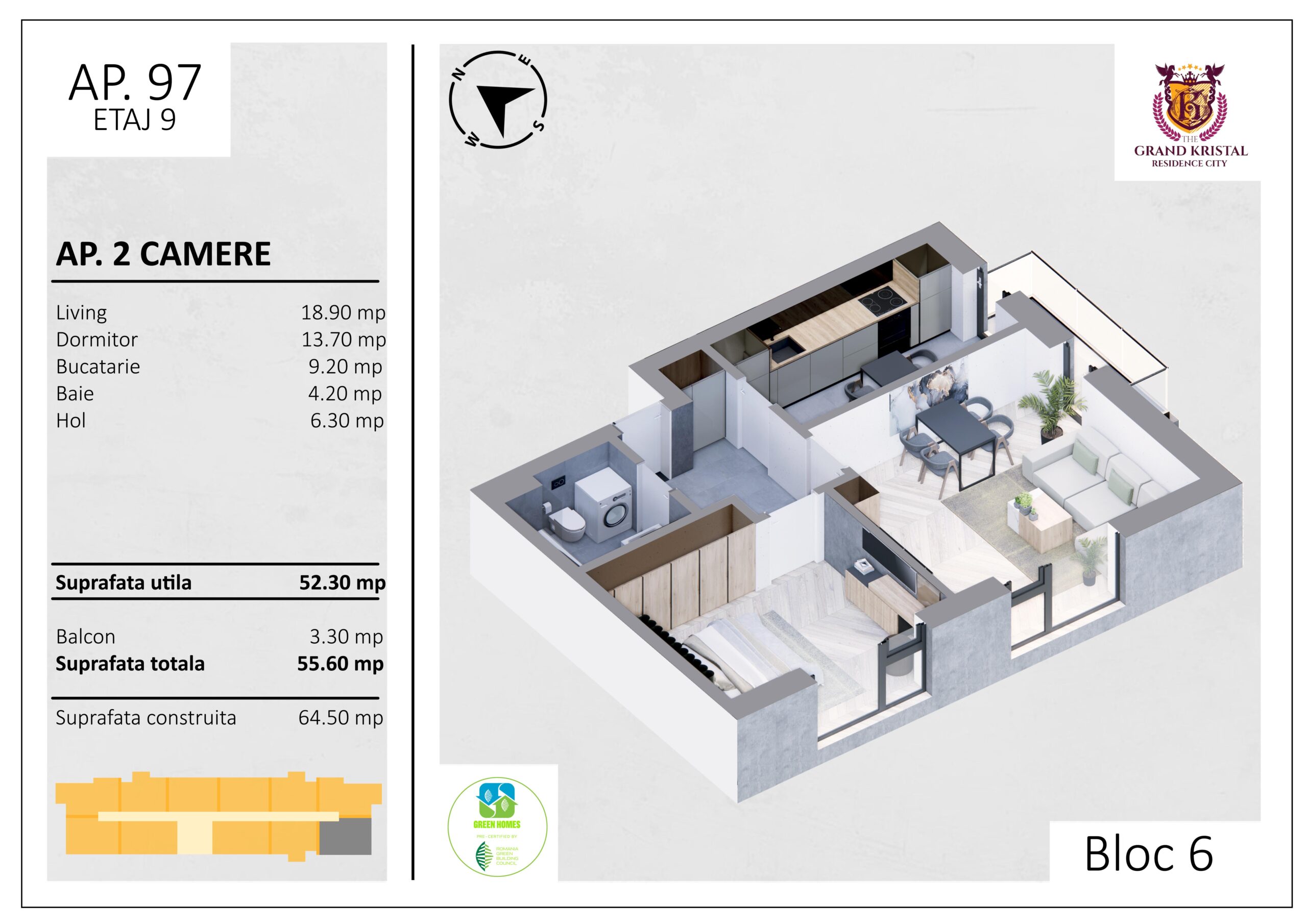 Suprafata utila totala: 55.6 mp