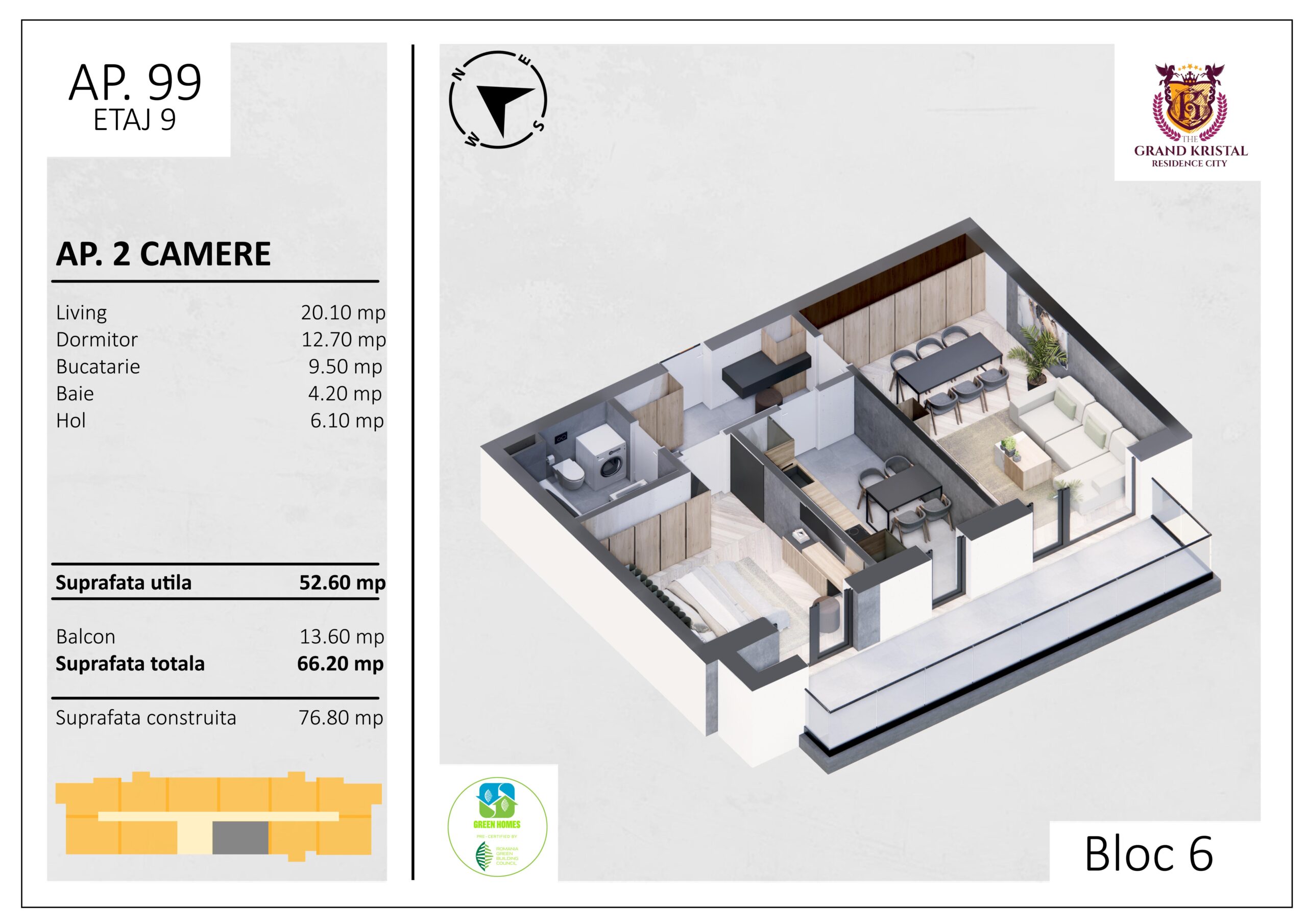 Suprafata utila: 52.6 mp