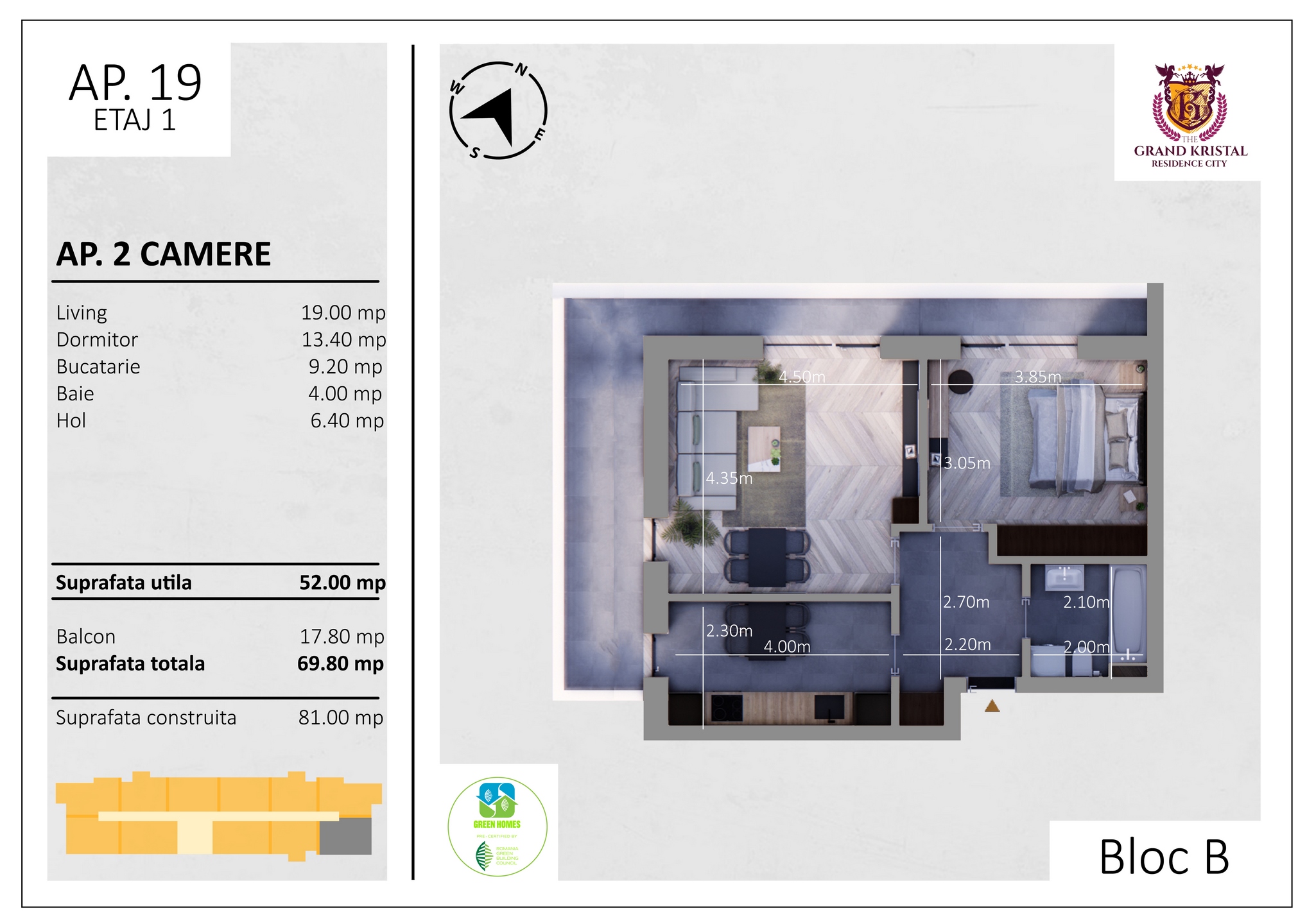 Contactati-ne pentru detalii despre apartamentele din ansamblul rezidential The Grand Kirstal Residence.