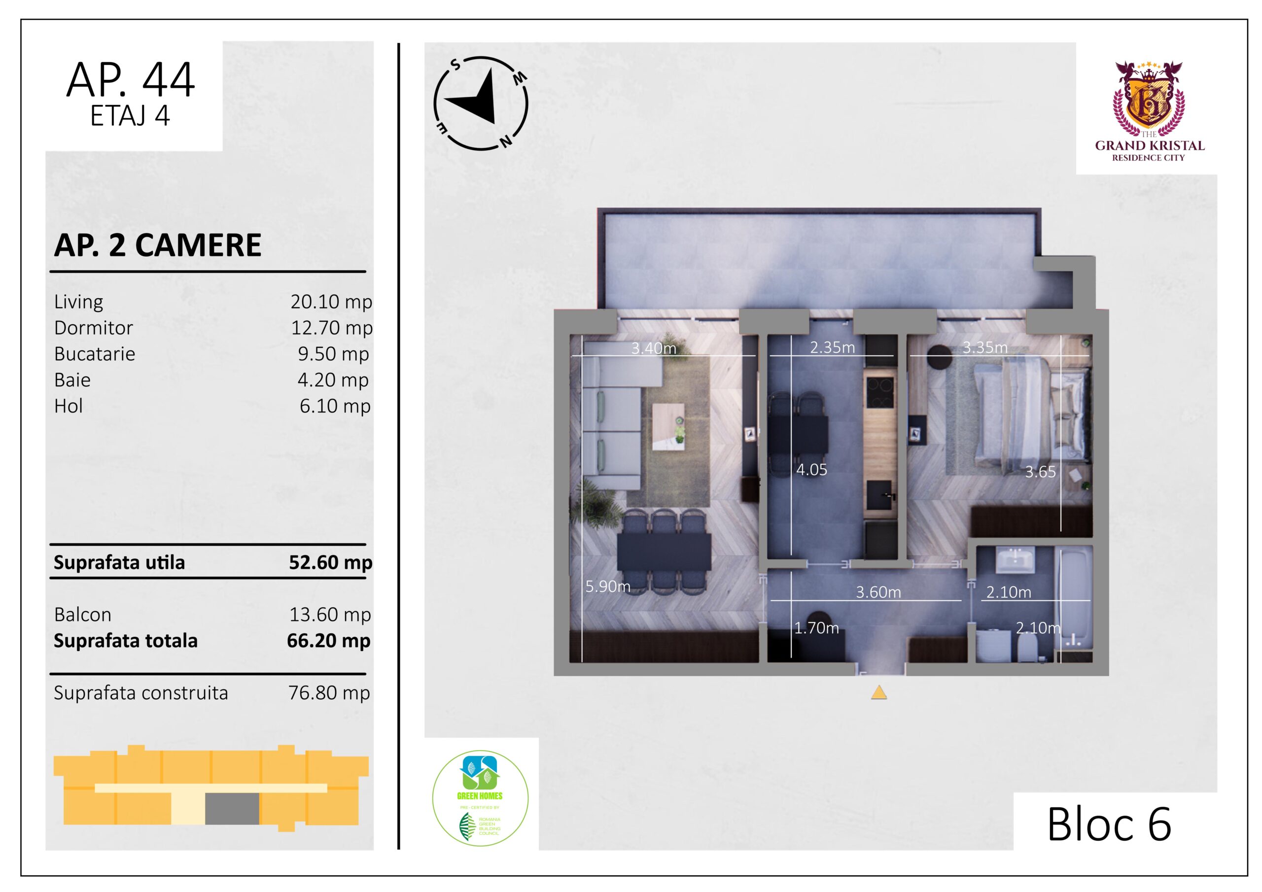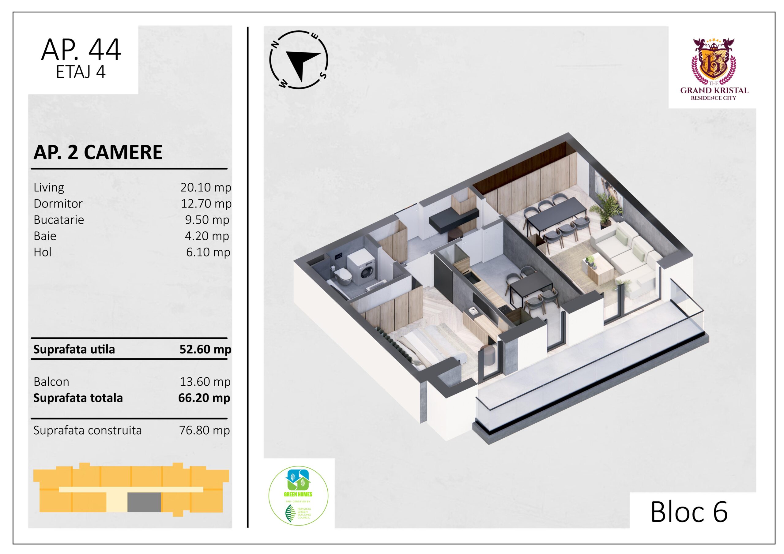 Suprafata utila totala: 62.2 mp
